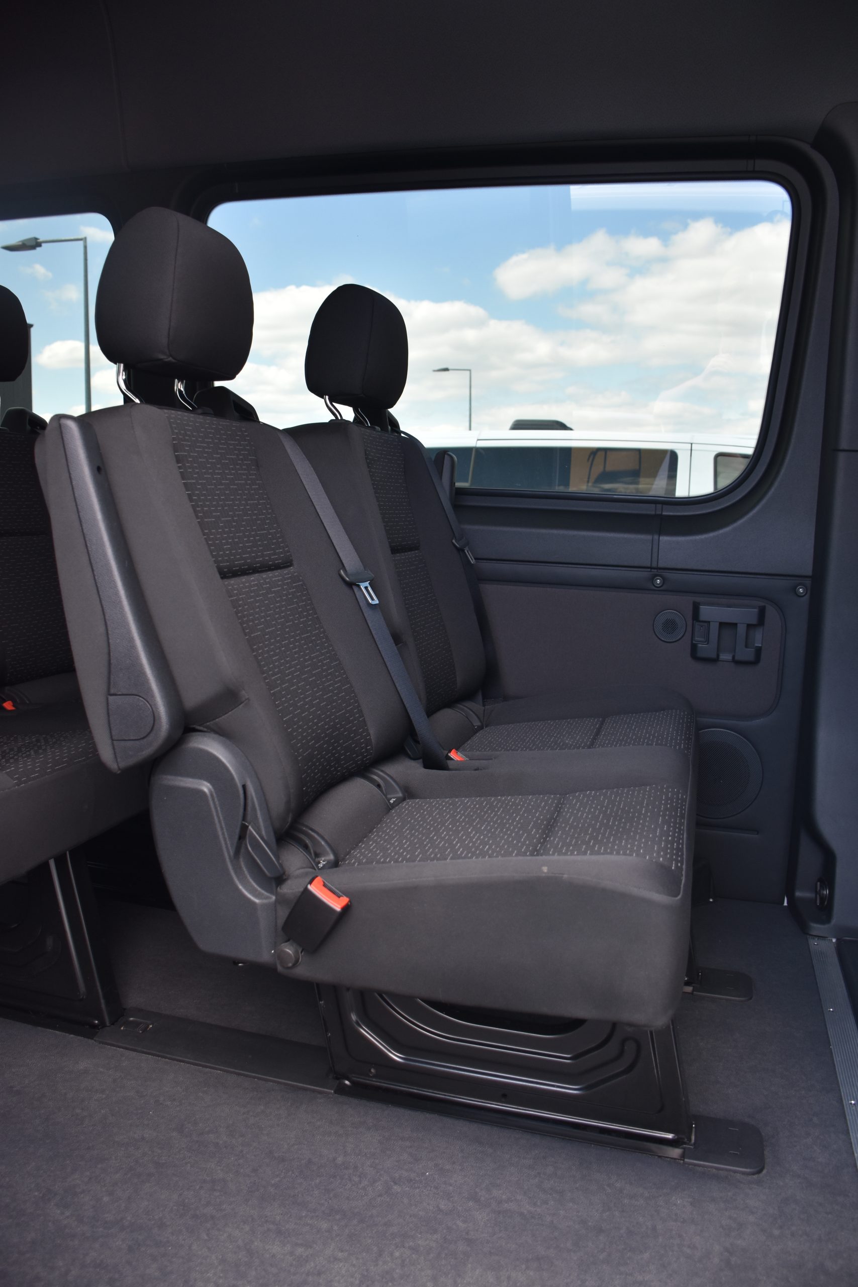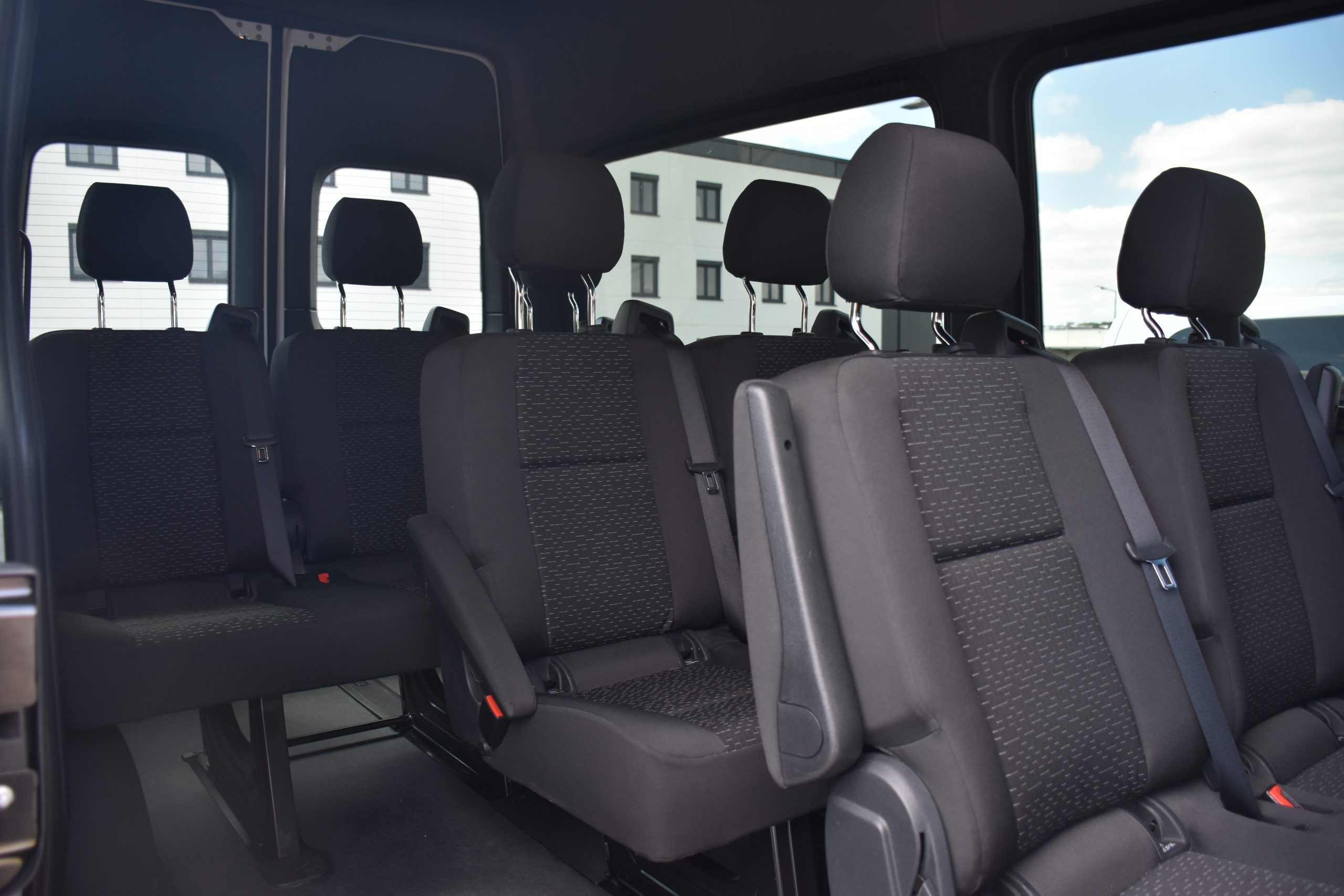 Véhicule spacieux avec 8 sièges confortables et climatisation.
